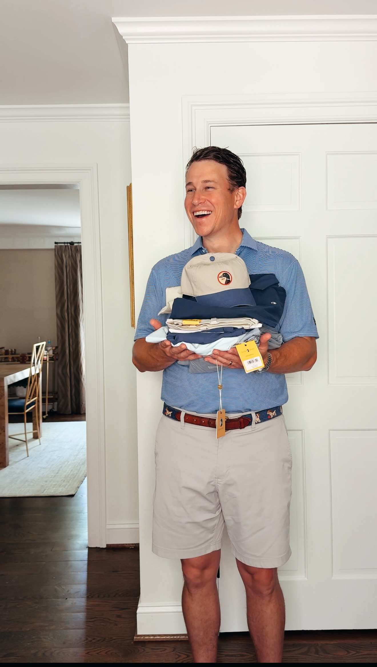 The fabric on this shirt is soft and has a slight stretch, which makes it more comfortable than your average button-down. He’s worn it on travel days, to church, and even tucked into golf pants. Tommy has the sport shirt in multiple patterns!