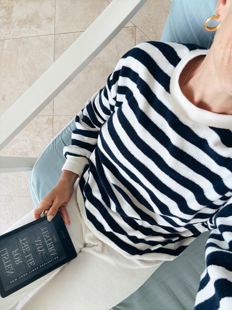 If there’s one set I reached for on vacation, it’s the Suzie Kondi Sifnos Sweatshirt paired with the Tosk Harem Pants. It’s resort loungewear at its best– plush terry that feels right at home thrown on after the pool or beach, but polished enough to walk around and hang out in before dinner. It’s the perfect in-between piece that makes you feel chic and comfortable (as you should on vacation).