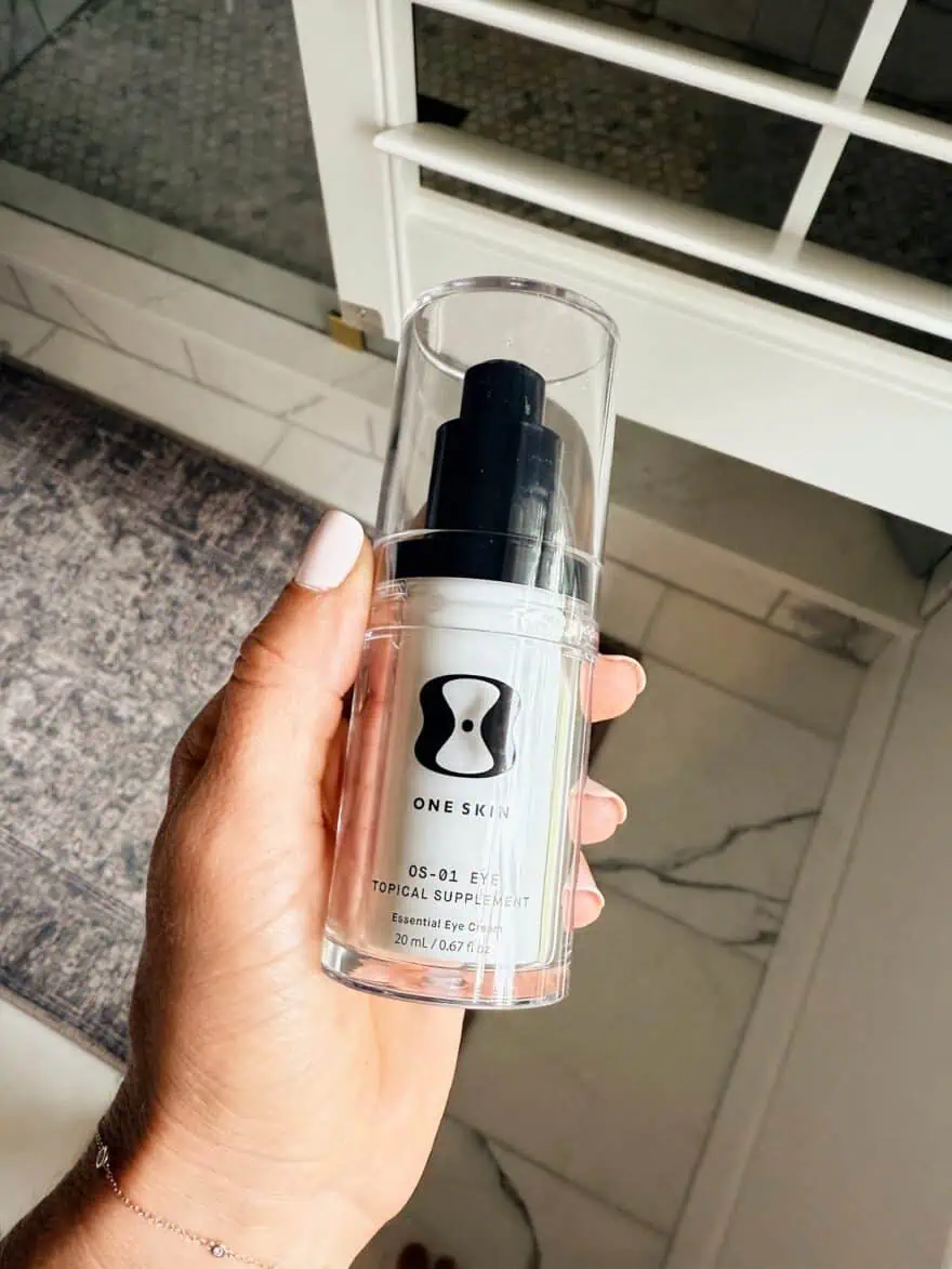 I LOVE the OneSkin eye cream. I feel like it immediately improves fine lines and darkness around my eyes, and then even more over time with consistent use. It’s become a non-negotiable in my routine, morning and night.