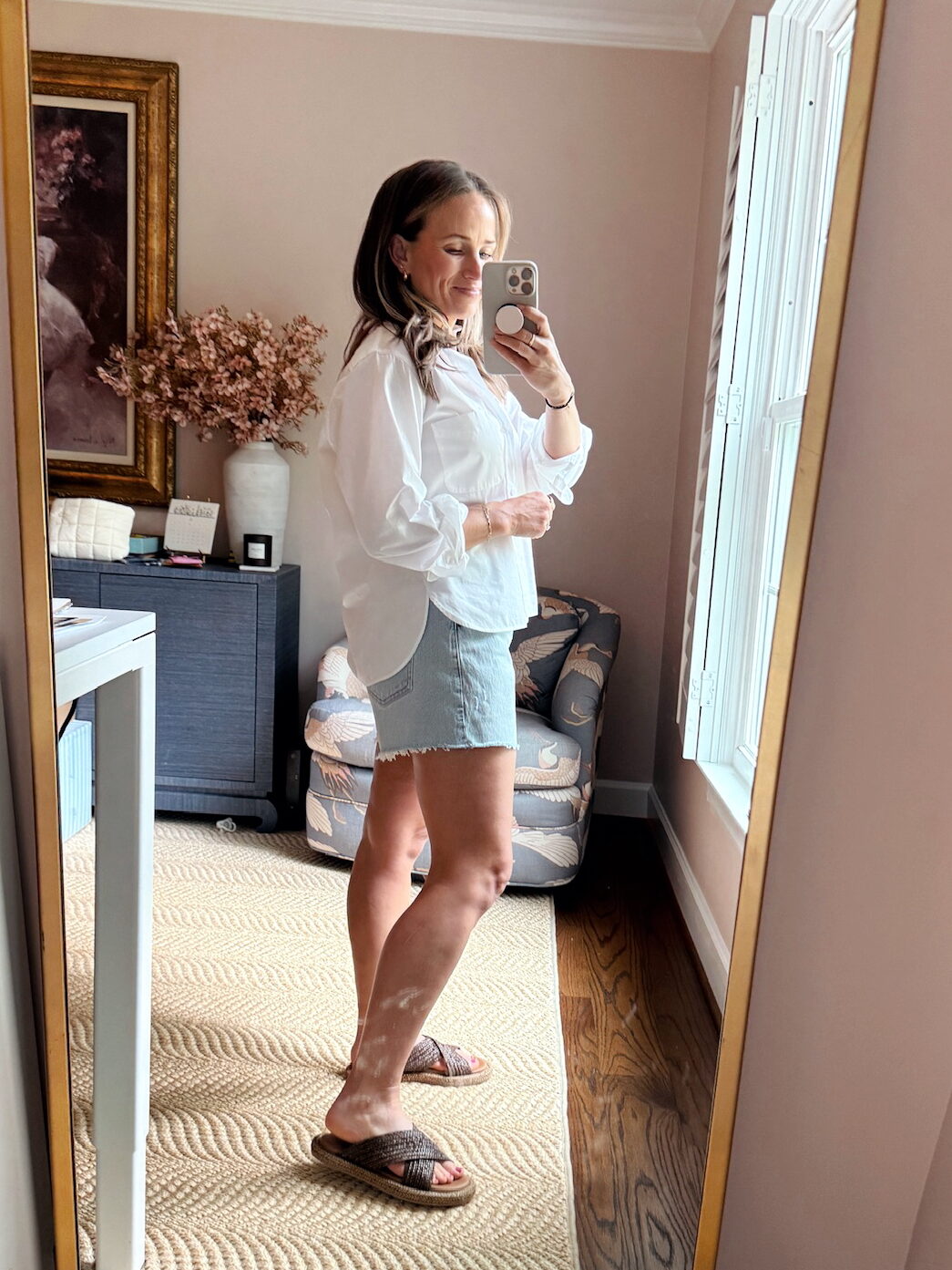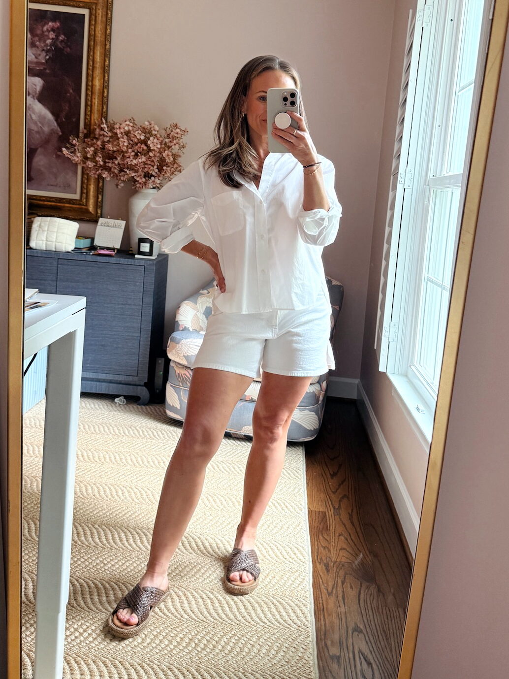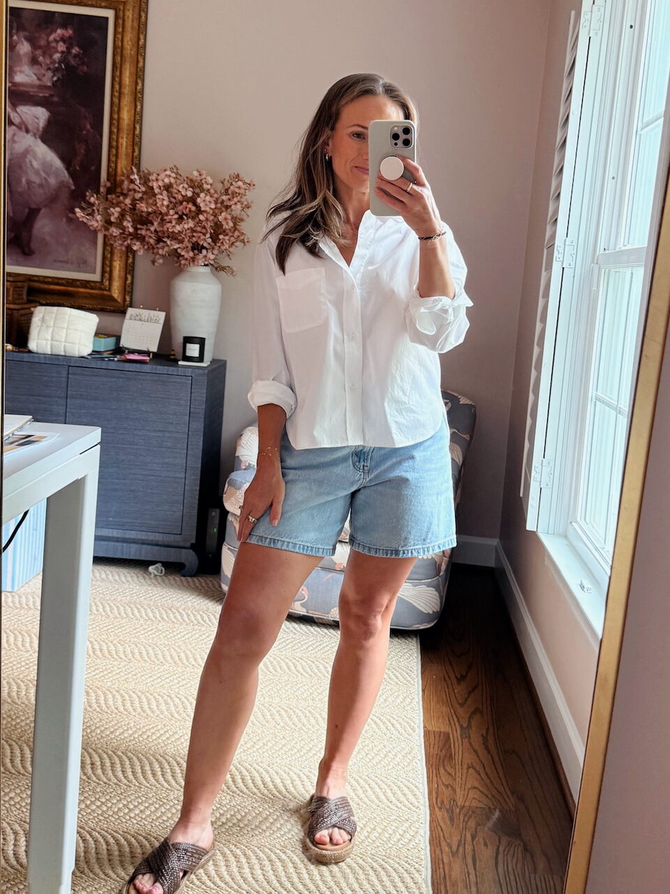 I’ve tried plenty of options for denim shorts, including Madewell (you can read my review of Madewell shorts here) and pricier pairs like Agolde, but the Abercrombie Dad jean shorts win for comfort, fit, and durability– and this is the best style they sell. This year, they didn’t make the same wash with the wide hem like I’m wearing below, but I love the other colors and washes they made this year. I just ordered white!