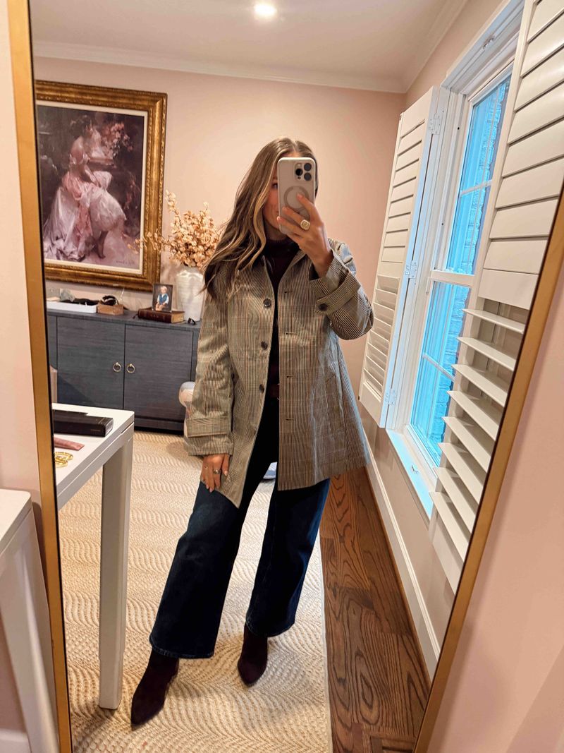 Tip: Stick to neutral shades like camel, navy, or small patterns in those colorways (like check or houndstooth) so it complements everything in your capsule.