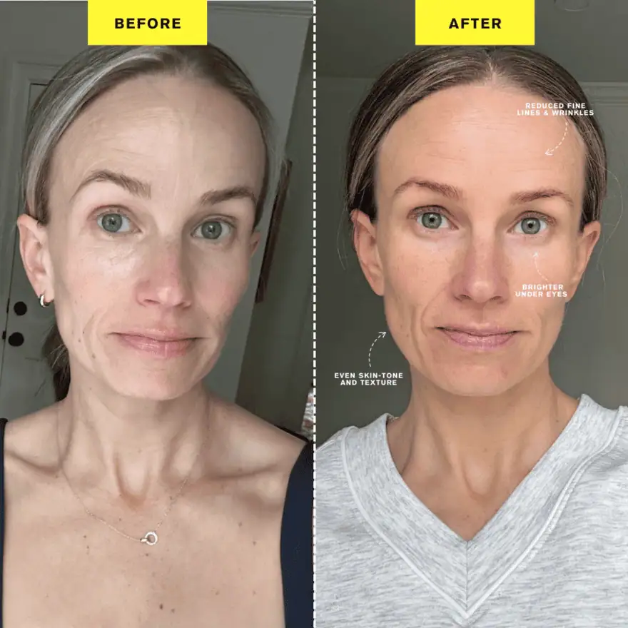 This is where I was really hoping to notice a difference since I’ve definitely lost volume in my face, especially under my cheekbones. If you pay attention to the before and afters, you can see that my face has more youthful fullness again! I’ve never had filler, but I have been considering Sculptra, and now I feel like I can kick that can down the road.